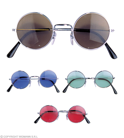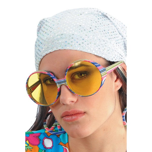 Simpaticissimi occhiali trendy con lenti tonde in differenti colorazioni, per vestire i panni del figlio dei fiori nelle vostre feste di carnevale....