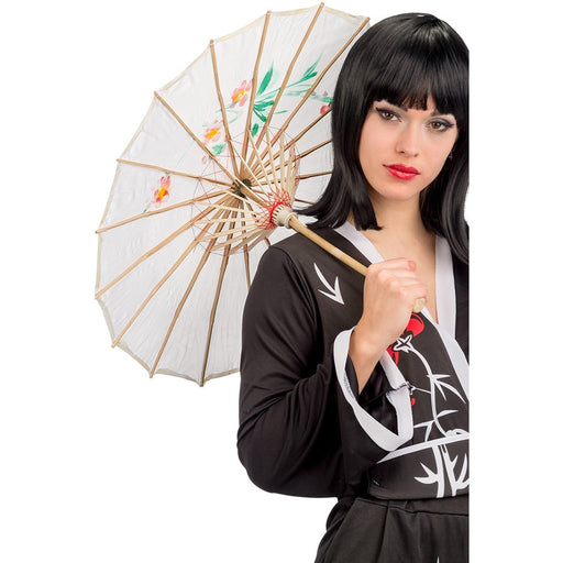 Classico ombrellino cinese in carta di riso bianca da diametro di 60 cm.