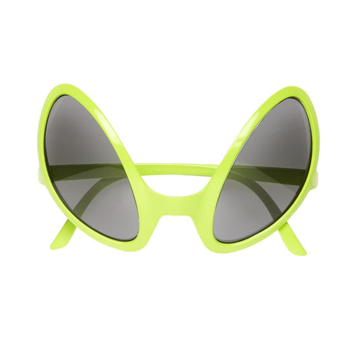 Occhiali modello alieno con struttura in plastica di colore verde. Ci si vede benissimo attraverso le lenti. Conferisce un aspetto molto alien style.