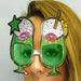 Occhiali spiritosi per l'addio al nubilato. L'articolo è realizzato totalmente in plastica rigida. Le due lenti sono colorate di verde. Le lenti formano un bicchiere da cocktail con la scritta a tutta festa. Perfetto da far indossare alle tue amiche per festeggiare l'addio al nubilato. Struttura resistente. Misura unica da adulti.