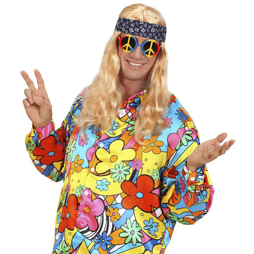 Simpaticissimi occhiali dai colori sgargianti e con simbolo della pace sulle due lenti. Multicolor e realizzati in plastica.