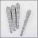 Confezione contenente ben 4 stalattiti realizzate in polistirolo ricoperte di plastica e glitter argento. L'altezza è di centimetri 15. Ognuna delle stalattiti è fornita con cappietto per poter essere appesa all'albero di Natale per decorarlo.