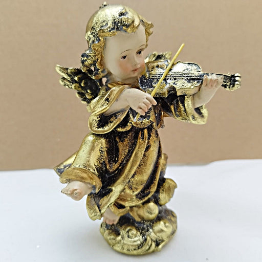 DECORAZIONE DI NATALE PARTICOLARMENTE SCENICA. CHERUBINO MUSICALE ORO ANTICATO. DIM: ALTEZZA CM. 13 ALTEZZA