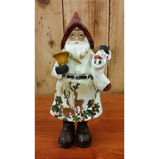 Simpatico Babbo Natale realizzato in coccio dipinto di rosso. Il cappuccio è di colore verde glitterato. La candida barba bianca e in caldo peluche...