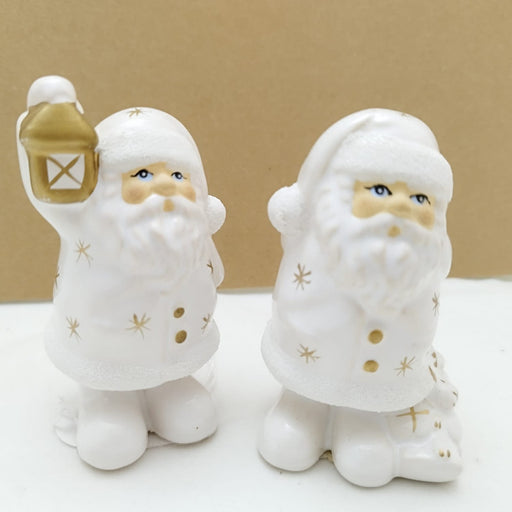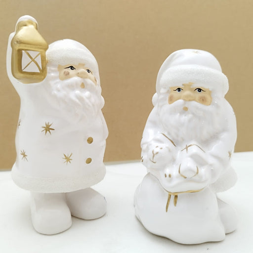 Babbo Natale di colore bianco con la caratteristica di avere un lungo cappello bianco, con la colorazione del vestito piena di glitter. Due soggett...