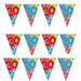 Coloratissimo festone con il numero 30 stilizzato su ciascuna bandierina. Il festone è realizzato in pvc e misura metri 6 di lunghezza.