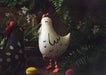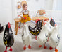 Palloncino decorativo a forma di gallina di colore bianco. La particolarità di questo soggetto è quella che, dopo essere stato gonfiato con aria,, potrà "camminare" grazie alla particolare forma delle zampe. basterà legare un filo al collo della gallina e, letteralmente "portarla a spasso". Dimensioni: cm 45 x 42.