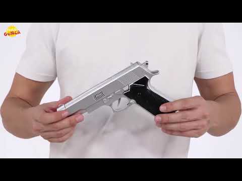 Pistola da poliziotto realizzata in plastica rigida. Il colore è molto realistico, in quanto è un argento spazzolato. Questa è una pistola caratter...