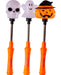 Gadget di Halloween luminoso, con tre differenti personaggi che si illumionano: teschio, fantasma e zucca. L'impugnatura è in plastica di colore arancione. Poi c'è una molla, per poter far muovere la parte superiore, ovvero la testa. Quest'ultima si illumina all'interno, con delle piccole luci led multicolor. L'articolo ha un'altezza di cm 22 circa. Batterie incluse.