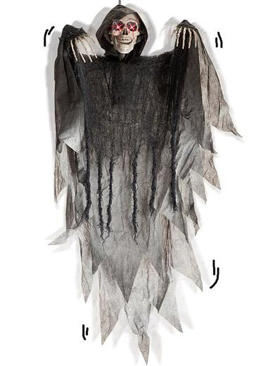 Terrificante scheletro da adoperare come decorazione di Halloween. Gli si illuminano gli occhi, si muove ed emette una lugubre risata, da far venir...