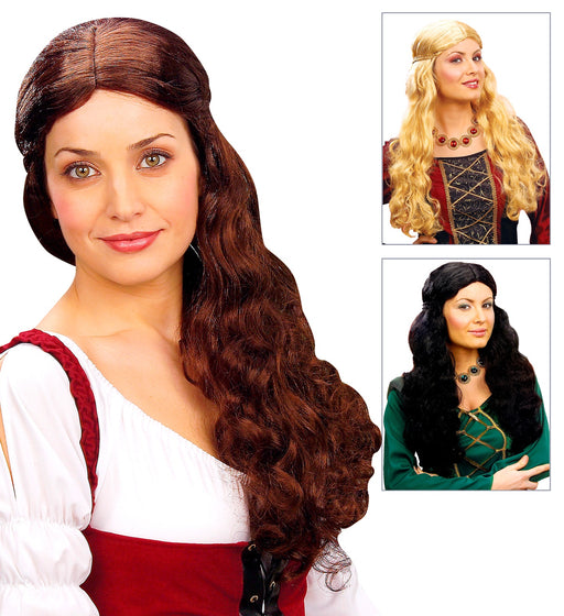 Parrucca modello donna medievale con una retina elasticizzata all'interno, per poterla adattare a qualsiasi misura della testa. Abbiamo a disposizi...