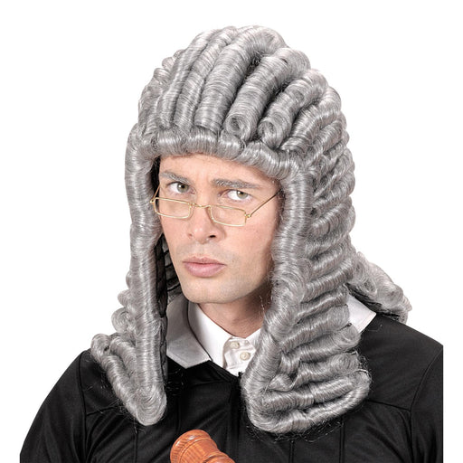 Parrucca modello giudice di colore grigio con retina elasticizzata interna che rende utilizzabile l'articolo stesso a piu' circonferenze della test...