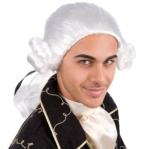 PARRUCA MODELLO DUCA DONATIEN COLORE BIANCO CON RETINA ELASTICIZZATA ALL ' INTERNO ADATTABILE A QUALSIASI MISURA DELLA TESTA