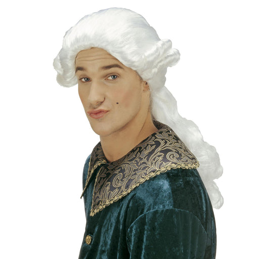 PARRUCCA MODELLLO CAVALIERE BIANCO, CON RETINA ELASTICIZZATA ALL ' INTERNO ADATTABILE A QUALSIASI MISURA DELLA TESTA