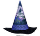 Tessuto morbidissimo e disegno stampato: preparatevi a incantare con il cappello da strega viola e nero per bambine! Un meraviglioso cappello da festa realizzato in panno, con stampa colorata e una splendida decorazione: il tutto per un look incantevole e assolutamente irresistibile! Queste sono le scritte presenti sul cappello: Happy Halloween e Les Witches. Altezza cm 25 circa. Sulla punta del cappello è presente un ragno in tessuto gomamto con glitter argento. Diametro interno cm 20.