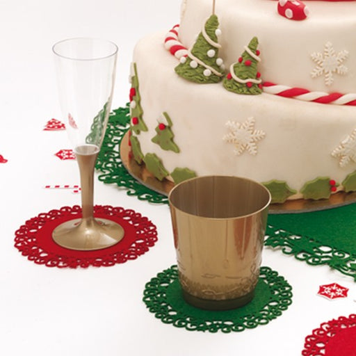 Impreziosisci la tavola natalizia con questi sottobicchieri in feltro colorato di colore verde dal diametro di 12 cm. Ogni confezione è composta da...