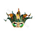 Graziosa maschera veneziana modello colombina Jolly. La maschera ha dei simpatici campanellini e rifiniture dorate di alta qualita'. Colori principali sono il bianco e il verde, ma e' anche ricoperta da un tocco dorato che la rende davvero affascinante.