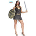 Costume da guerriera romana per travestirsi durante il periodo di carnevale o per specifiche rappresentazioni storiche. Il costume è costituito da un pezzo unico, il vestito e il mantello. Vesti i panni di una guerriera romana, grazie a questo vestitino dal feeling femminile, dove vengono messe ben evidenza le forme del corpo del gentil sesso. Sul nostro store troverai in vendita, qanche lo scudo, i sandali e bigiotteria varia, per completare il travestimento. Abbiamo due taglie disponibili: la S e la M.