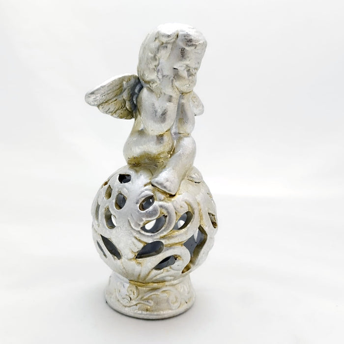 ANGELO ARGENTATO SU SFERA DECORATA CM 15