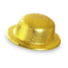 Si tratta di una bombetta in plastica trasparente con rivestimento nella parte esterna di tutti questi glitter dorati; essendo trasparente lo stesso effetto è riprodotto anche all'interno del cappello. Circonferenza interna circa 58 cm per un'altezza di circa 9 centimetri.