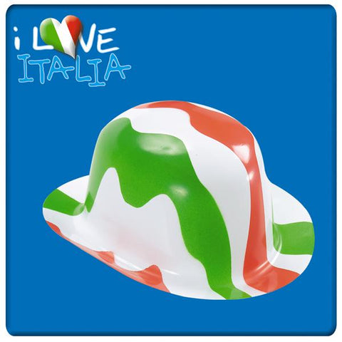 Bombetta realizzata in plastica e che porta orgogliosamente i colori del nostro caro tricolore, nei colori verde, bianco e rosso. Un utilissimo accessorio indispensabile per scatenare il tifo durante le partite di calcio della nazionale di calcio. Dimensioni circonferenza centimetri 58 e altezza centimetri 10.