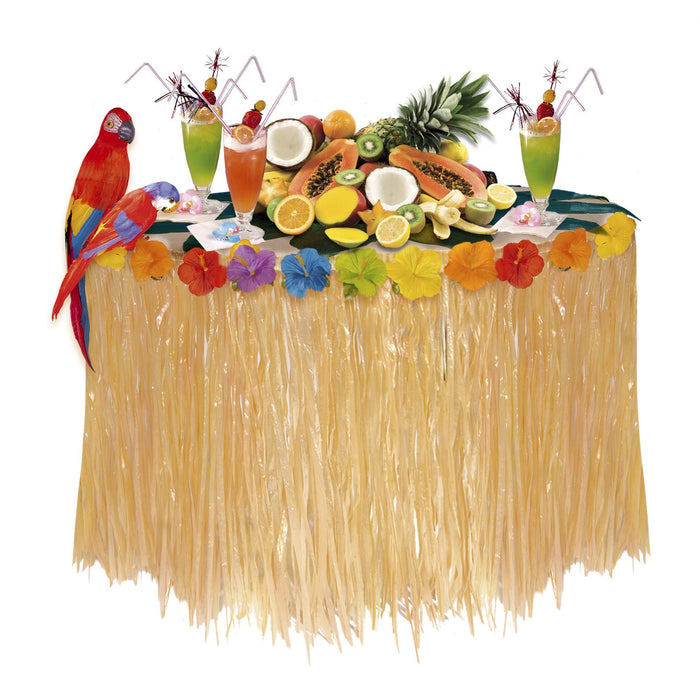 Decorazione tropicale per la tua tavola in plastica, con decorazioni floreali in stoffa. Dimensioni: larghezza centimetri 275 x centimetri 75.