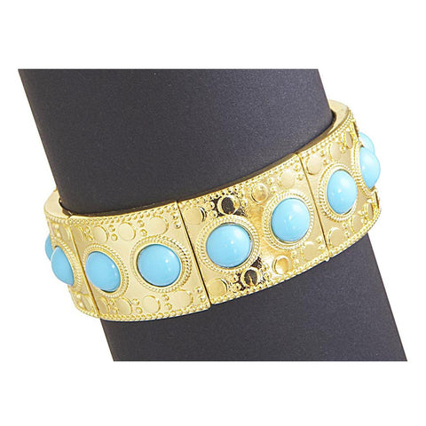Il Braccialetto Cleopatra, dalle dimensioni standard, si ispira all'eleganza e al mistero dell'antico Egitto. Arricchito da pietre di un intenso colore celeste, questo accessorio cattura lo sguardo e aggiunge un tocco di fascino esotico a qualsiasi outfit. Perfetto per chi desidera distinguersi con uno stile unico e raffinato, il braccialetto unisce tradizione e modernità, rendendolo un regalo ideale o un prezioso complemento per la propria collezione di gioielli. Indossalo per esprimere la tua personalità con classe e originalità.