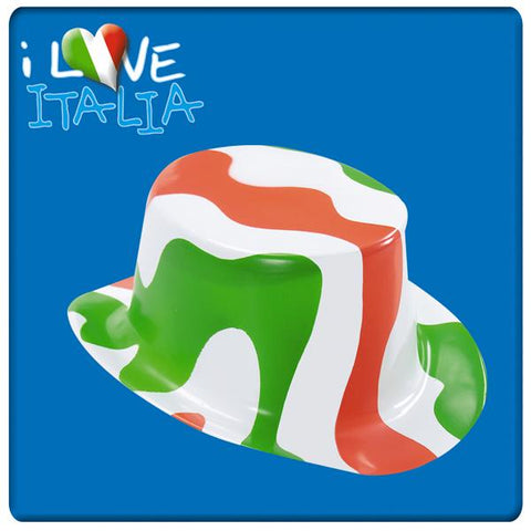Cilindro con la i colori della bandiera italiana stilizzati sulla sommita'. Leggero e divertente da indossare questo cilindro sara' il compagno di tante serate seduti davanti alla televisione, tifando la nazionale di calcio con tutto il cuore.