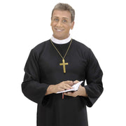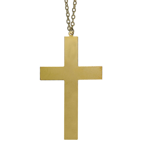 Collana totalmente realizzata in metallo dorato. Dimensioni: altezza centimetri 11. Per tutti i tuoi travestimenti a tema clero.