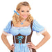 Collana in tessuto con scacchi bianchi e celesti. Il ciondolo è in plastica rigida. Tipico accessorio per un vestito da tirolese o bavarese da donna. Pratica chiusura con gancetto in metallo.