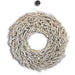 Corona natalizia realizzata in legno intrecciato. Il diametro di centimetri 60 è perfetta per essere appesa ad una porta in legno scuro, questo per contrastare con il colore chiaro dell'articolo. Diametro interno circa 20 cm