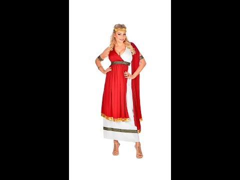 Costume di Carnevale per te, che nel 2020, ti senti ancora un'imperatrice romana. Il costume è realizzato totalmente in poliestere. I colori predominanti sono il bianco, il rosso, le bordure dorate con rifiniture nere. Il costume è realizzato a pezzo unico, con il drappo rosso cucito con la vesta di colore bianco. La parte finale del drappo, si terrà sul braccio, come si può vedere la modella fa, nell'immagine esemplificativa. Il drappo, nella parte in basso, termina con una striscia di tessuto dorato. All'interno della confezione sono presenti, inoltre: la cintura e i due bracciali, sempre di tessuto e dello stesso motivo. Abbiamo a disposizione due differenti taglie: la L e la M. Sempre in taglia da adulto.