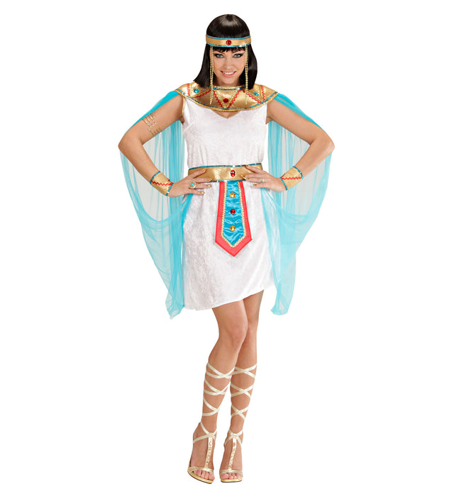 All'interno della confezione troverai: il vestito, il collare con i veli, la cintura, i braccialetti, il copricapo con perline. Abbiamo la disponibilità di due differenti taglie: la S e la M. Sono taglie da adulto. Avrai la possibilità di travestirti da regina egiziana e questo costume ha tutto il necessario per esaudire questo tuo desiderio per Carnevale. Tutti i bracciali e la cintura sono realizzati in tessuto ed hanno una finitura dorata. Il vestito è realizzato in poliestere con differenti inserti.