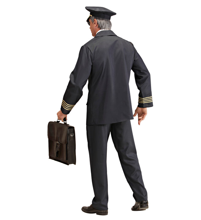 Vuoi anche tu prendere i comandi dell'aereo più pazzo del mondo? allora non ti resta che indossare questo originale costume da pilota di aereo completo di giacca, pantalone e cappello. La giacca è dotata anche di mostrine nel petto e stemma nel cappello. Camicia, cravatta e borsa non compresi nel costume.