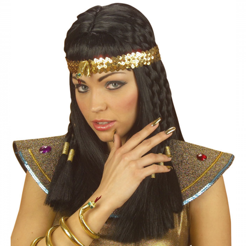 Fascia per la testa egiziana con piccolo serpente dorato sulla parte frontale. Questo accessorio per travestimenti e' realizzato in tessuto elasticizzato e paiettato che circonda la testa. Lunghezza centimetro 40.
