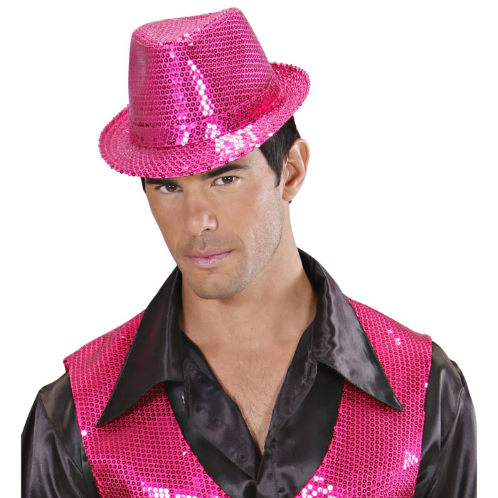 Cappello modello fedora in tessuto con paillettes di colore rosa molto acceso. Stiamo parlando di una taglia standard da adulti, e pur essendo di un colore molto sgargiante ed eccentrico, il cappello in questione può essere indossato sia da donne, sia da uomini. Il tessuto di cui è composto il cappello è tappezzato da tantissime paillettes. Sempre sul nostro store troverai altri gadget con paillettes colorate. La circonferenza è di 57 centimetri.