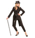 Un nuovo frac per tutte quelle donne che amano vestire ricercato anche durante il periodo di Carnevale. Bavero in raso, rifiniture professionali. La caratteristica di questo modello è quella di avere code lunghissime e di risultare abbastanza attillato al corpo, mettendo in mostra le forme dei fianchi e del seno. L'articolo si riferisce alla sola giacca. Perfetto costume per il tuo carnevale...chic. Differenti taglie disponibili dalla s alla m alla l.