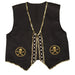 Si tratta di un gilet in misura da adulto. La taglia è standard, questo vuol dire che può essere indossato da più persone. La caratteristica è quella di averei simboli proprio dei pirati, ovvero i teschi e filze di quest'ultimi. In ultimo, e non per ordine d'importanza, c'è una bordatura dorata. La misura è standard. Potrai abbinarlo con la cintura, che troverai sempre sul nostro store.