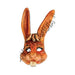 Maschera veneziana animale, riproduce il musetto di un coniglio. I colori vanno dal giallo all'arancio intenso, la maschera è totalmente realizzata a mano in cartapesta e stucco veneziano, bellissimo e curato il dettaglio dell'orecchio penzolante. Dalla tradizione del carnevale veneziano.
