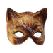 Maschera Veneziana animale a mezzo Viso. Copre la parte superiore del volto, riproduce un gatto con colori caldi ed intesi, dal marrone all'ocra. Perfetta da indossare anche nelle occasioni più particolari, utilizzata anche nel film Eyes Wide Shut, è realizzata in cartapesta e stucco veneziano.