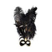 Maschera Veneziana Colombina Velvet dall'aspetto davvero straordinario. La colombina di base è ricoperta in fine velluto nero, incollato sulla cartapesta e decorato lungo i bordi con miriadi di bellissime perle. Completa questa straordinaria maschera del Carnevale di Venezia, la foltissima chioma di piume di struzzo e pavone, di colore nero con riflessi colorati.