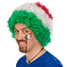 Parrucca riccia con i colori della bandiera italiana. Retina elasticizzata all'interno adattabile a qualsiasi misura della testa.
