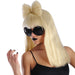 Parrucca bionda che riproduce il taglio di capelli della famosa cantante Lady Gaga. La parrucca e' liscia con frangia ed è caratterizzata dal tipico fiocco tante volte mostrato dalla cantante. Una parrucca spettacolare per il tuo costume di Carnevale o per il tuo Cosplay, dotata di retina per capelli all'interno. Non sono compresi gli occhiali all'interno della confezione!