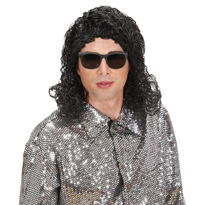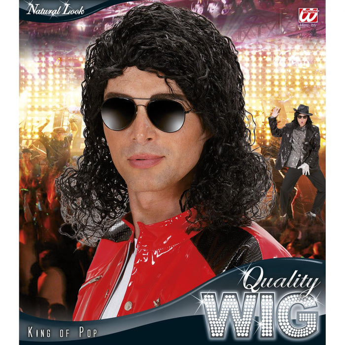 PARRUCCA MODELLO DEL POP CON RETINA ELASTICIZZATA ALL' INTERNO ADATTABILE A QUALSIASI MISURA DELLA TESTA. DA ABBINARE ALLA CAMICIA CON PAILETTES ARGENTATA E BORSALINI NERI O BIANCHI PER DIVENTARE IL VERO RE DEL POP. ISPIRATA AL TAGLIO DI CAPELLI DELL'INDIMENTICATO MICHAEL JACKSON.