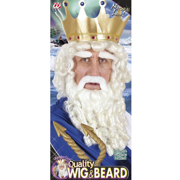 Nella confezione del prodotto che ti proponiamo troverai ben due prodotti: la parrucca e la barba. Ma di quale personaggio...divino? Niente di meno che Zeus o anche Poseidone, il dio dei mari. La parrucca e la barba sono di un bianco candido e molto boccolose! La parrucca ha una speciale retina interna per aderire alla testa. La barba ha due elastici, per poterla indossare, e da mettere attorno alle orecchie. Le due parti sono, quindi, completamente staccate l'una dall'altra. Sul nostro store troverai anche il vestito da Poseidone e il tridente dorato, tutto per poterti sentire...una divinità a Carnevale. Attenzione: all'interno della confezione non è compresa la corona che si vede nell'immagine dell'articolo.