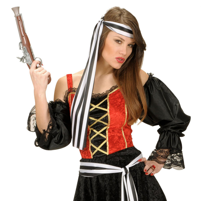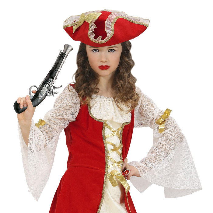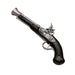 Pistola storica usata dei vecchi pirati dei mari, dove la precisione del colpo e la funzionalita' della pistola li aiutava nelle loro scorribande e ruberie varie. Modello realizzato in plastica resistente fedele riproduzione dell'originale. Lunghezza: centimetri 40.
