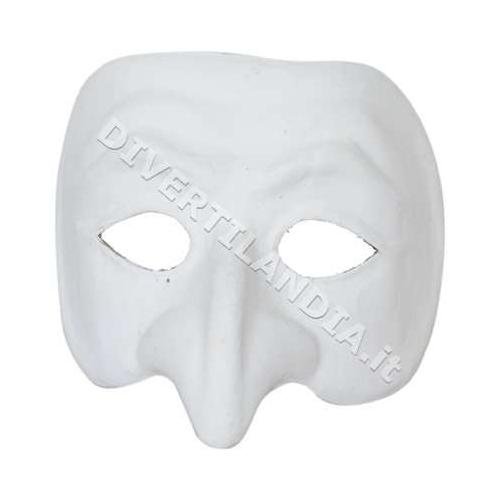 Maschera Veneziana lasciata al grezzo, in cartapesta non lavorata, raffigurante il personaggio Pulcinella, caratteristico dell'ibridazione avvenuta tra Commedia dell'Arte e Carnevale Veneziano. Particolarissima, ottima anche come base da colorare per realizzare la propria maschera veneziana personalizzata.