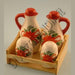 Splendido set di articoli da regalo per la tavola e la cucina a tema natalizio. In questo magnifico box regalo trovi 4 mini contenitori e dispenser per sale, pepe, olio e aceto, tutti decorati con una stella di Natale dipinta. Le due ampolle più alte misurano cm 13 con diametro 6 mentre le più piccole cm 7 con diametro 5 cm.