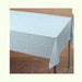 La parte posteriore che va a contatto con la tavola e' di plastica resistente all'acqua. La parte superiore è composta da un tessuto assorbente. Particolare e coloratissima tovaglia in plastica di colore celeste. Dimensioni centimetri 137 x centimetri 274.